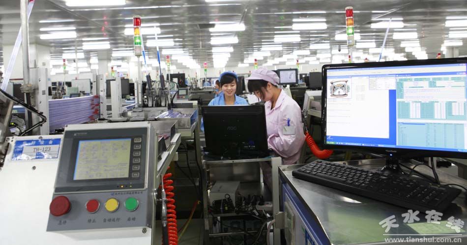 記者走進(jìn)科技園制造廠房,被生產(chǎn)現(xiàn)場忙碌的景象所感動(dòng)?萍紙@一期工程各項(xiàng)設(shè)施運(yùn)轉(zhuǎn)井然有序,在近千人的廠房內(nèi),在生產(chǎn)車間,我們看到上千臺先進(jìn)的生產(chǎn)設(shè)備正在運(yùn)行,操作員在機(jī)臺聚精會(huì)神工作,將加工產(chǎn)量上傳到ERP系統(tǒng)。