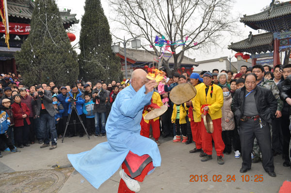 正月十五上午十時(shí),伏羲廟大門牌坊前鑼鼓喧天,人潮涌動(dòng)。古老的祭祀儀式——開山攢神正在這里舉行。