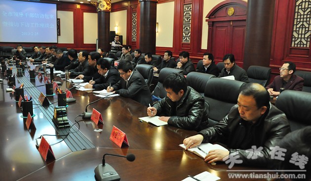 會(huì)上,各縣區(qū)分管信訪工作的領(lǐng)導(dǎo)、信訪局負(fù)責(zé)人和市直有關(guān)部門負(fù)責(zé)人就如何做好2013年領(lǐng)導(dǎo)干部信訪包案和接訪、下訪工作進(jìn)行了交流座談。