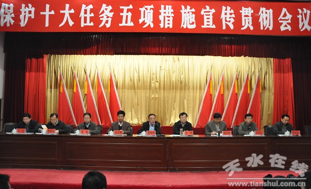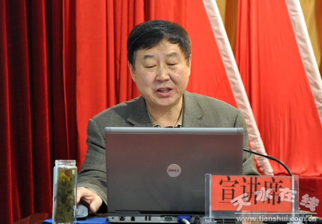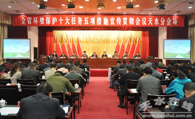 3月14日,由省環(huán)保廳副廳長董光國帶領(lǐng)的環(huán)境保護(hù)宣講團(tuán)來天水市,就今年環(huán)境保護(hù)工作十大任務(wù)、五項措施進(jìn)行宣講。 副市長雷鳴出席宣講會議。
