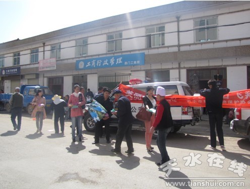 (4月26日,工作人員在張家川縣恭門鎮(zhèn)進(jìn)行“愛鳥周”宣傳 。)