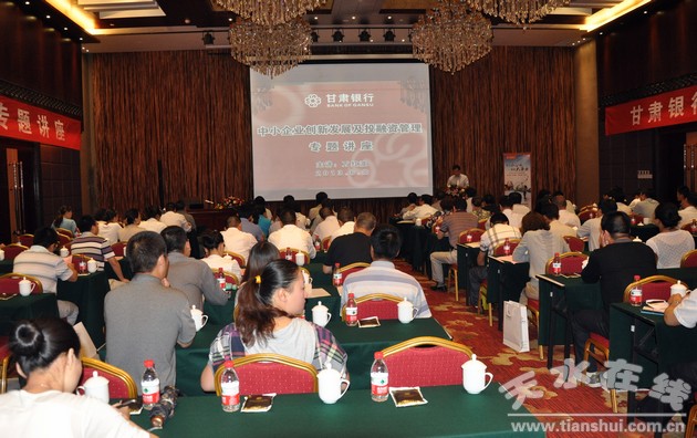 此次講座是由天水市政府金融辦和甘肅銀行秦州支行共同主辦的,目的在于共同探討政、銀、企合作的途徑、方法和渠道,解決中小企業(yè)創(chuàng)新發(fā)展實踐中存在的投融資問題,幫助中小企業(yè)提高自身經(jīng)營管理的綜合能力,推進(jìn)天水中小企業(yè)發(fā)展。