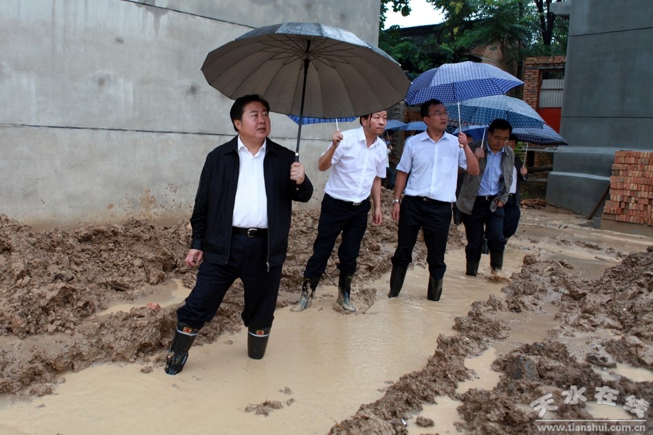 (在秦州區(qū)娘娘壩鎮(zhèn)查看災情)