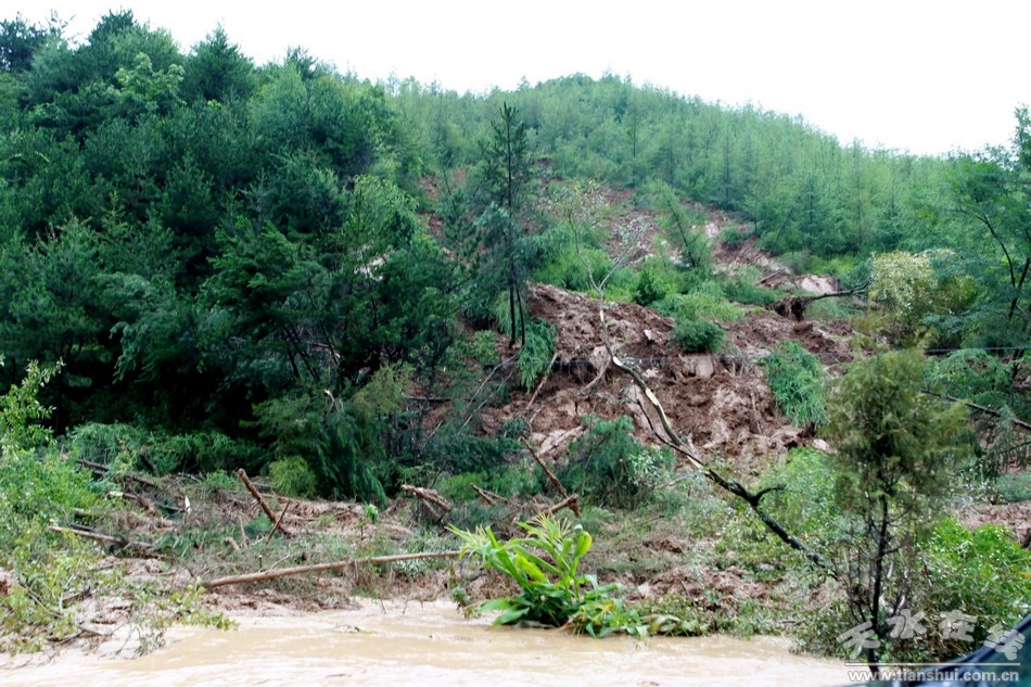 7月21日和22日的強降雨導致馬跑泉鎮(zhèn)大溝村發(fā)生嚴重的泥石流災情,泥石流量達20萬立方, 9戶、137間村民房屋和村委會新舊辦公場所44間辦公室被沖毀,因預警及時沒有造成人員傷亡,25日凌晨的新一輪降雨致使險情再次加劇。25日,秦州區(qū)娘娘壩鎮(zhèn)郭家鞍子村附近山洪暴發(fā),交通中斷,道路兩旁山體出現(xiàn)滑坡現(xiàn)象。