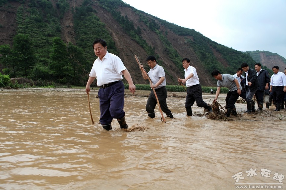 (天水市委市政府領(lǐng)導(dǎo)第一時間趕赴災(zāi)區(qū)查看災(zāi)情,現(xiàn)場指導(dǎo)搶險救災(zāi)工作。)