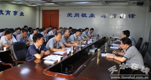 8月27日,副市長蔡建明來到天水市教育局,對全市教育工作進行了調研。市教育局負責人就我市教育工作存在的突出問題、今后的工作思路和需要協(xié)調解決的幾件事情進行了匯報。參會人員圍繞我市教育存在的問題暢所欲言、展開討論。