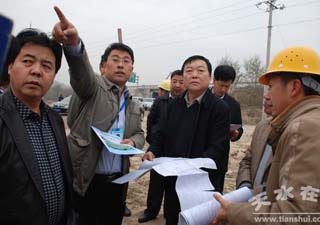 11月21日,天水市副市長雷鳴帶領秦州區(qū)政府、市政府督查室、市發(fā)改委、市交通運輸局等相關單位負責人,深入十天高速公路建設現(xiàn)場就工程進展情況及存在的問題進行了督查。雷鳴強調(diào),各相關單位負責人要按照十天高速公路整體工程建設計劃,正視項目建設中存在的問題,務必限期解決好項目建設中存在的問題,盡力為工程建設創(chuàng)造良好的施工環(huán)境,切實加快工程建設進度。
