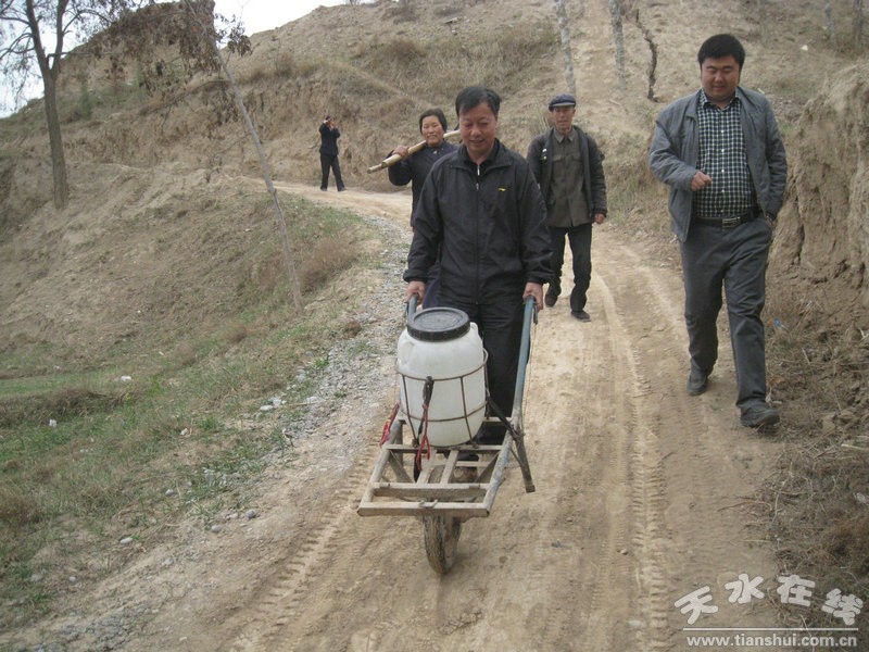 為了保證在清明前將苗木栽好,市建設(shè)局想方設(shè)法多方籌資4萬余元,從清水選調(diào)優(yōu)質(zhì)高產(chǎn)早熟核桃苗木4000株,免費運送至地頭。4月3日,苗木運至北山村后,我局邀請的市林業(yè)局技術(shù)人員從栽植過程、覆膜保墑、越冬保護(hù)、整形修剪、病蟲害防治等方面為廣大村民和市建設(shè)局職工做了詳細(xì)講解。隨后,市建設(shè)局黨員干部與幫扶群眾共同熟練地在地里挖坑、調(diào)泥漿、浸根、培土栽植,澆水覆膜,用一天時間完成了全部的栽植任務(wù)。