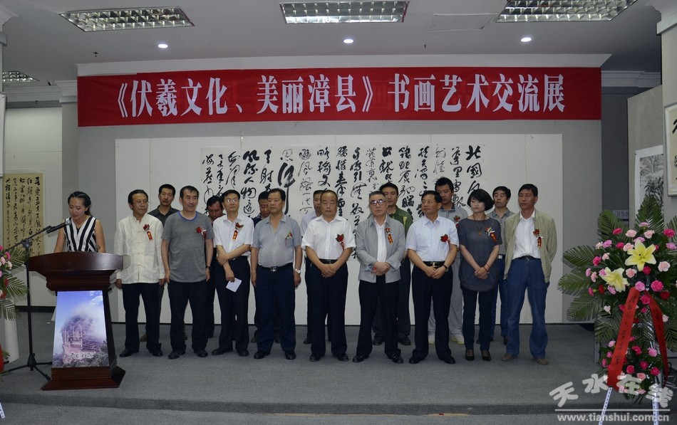 6月26日,由天水市文學(xué)藝術(shù)界聯(lián)合會、政協(xié)漳縣委員會主辦,中國美術(shù)家協(xié)會天水創(chuàng)作寫生基地、漳縣文化館承辦,天水市書法家協(xié)會、天水師范學(xué)院詩書畫協(xié)會、金龍大酒店協(xié)辦的《伏羲文化·美麗漳縣》書畫藝術(shù)交流展在天水開展。