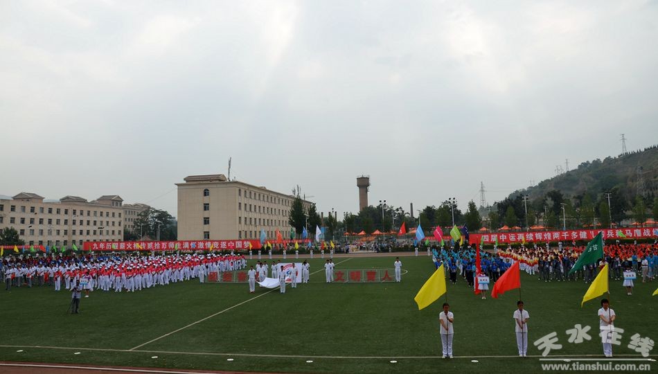 弘揚(yáng)體育精神,展現(xiàn)青春風(fēng)采。8月2日上午,天水市第四屆中學(xué)生運(yùn)動(dòng)會(huì)在甘肅工業(yè)職業(yè)技術(shù)學(xué)院體育場隆重開幕。上午9時(shí)許,本屆運(yùn)動(dòng)會(huì)的裁判員及來自我市五縣兩區(qū)、市一中、市逸夫?qū)嶒?yàn)中學(xué)9個(gè)代表團(tuán)的1644名運(yùn)動(dòng)員邁著矯健的步伐,奮發(fā)激昂地依次入場。