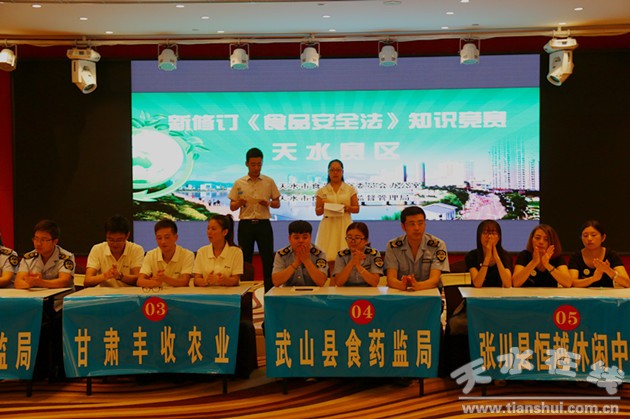 8月31日,天水市食品安全委員會辦公室、市食品藥品監(jiān)督管理局舉辦了全市新修訂《食品安全法》知識競賽活動。來自五縣兩區(qū)食品藥品監(jiān)督管理局及部分食品生產(chǎn)經(jīng)營企業(yè)選送的20支代表隊參與了競賽。市政府副市長張建杰現(xiàn)場觀看比賽并為獲獎代表隊頒獎。