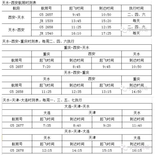 換季后,天水機場航班運行將發(fā)生微調。原天水—重慶航班調整為每周2、4、6一周三班,天水—天津—大連架次不變,詳細調整計劃見下表。
