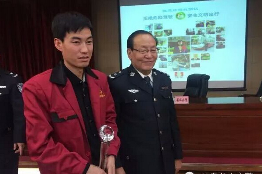 。ā半]原好司機(jī)”提名獎(jiǎng)獲得者謝仁義、惠二龍?jiān)谔焖痪ш?duì)領(lǐng)獎(jiǎng))