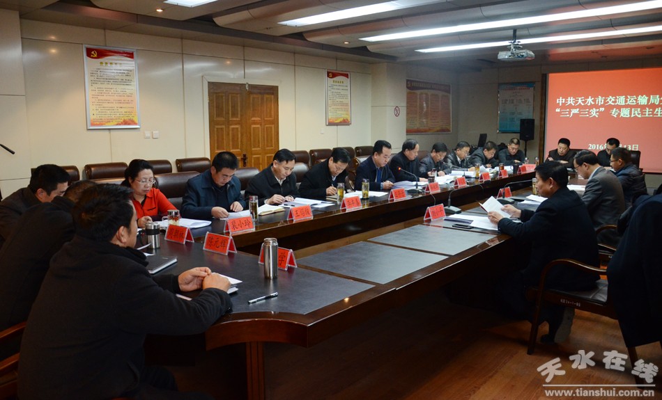 1月13日,天水市交通運(yùn)輸局召開局黨組領(lǐng)導(dǎo)班子“三嚴(yán)三實(shí)”專題民主生活會(huì)。市政府副市長王鈞、市紀(jì)委及市委組織部相關(guān)負(fù)責(zé)人到會(huì)指導(dǎo)并講話。會(huì)議由局黨組書記、局長楊永暉主持,局班子成員及縣處級(jí)干部參加。