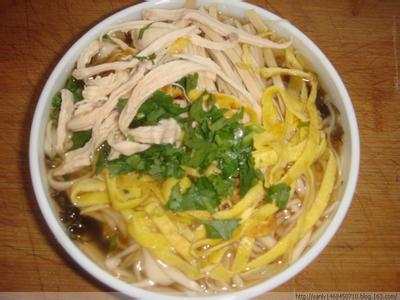 天水雞絲餛飩有四大特點(diǎn):一是顏色亮。當(dāng)一碗正宗的天水雞絲餛飩端到你面前時(shí),搭眼一看、紅、黃、綠、白四種翻色一定會(huì)讓你賞心悅目。紅:淺紅色的雞肉,鮮紅色的辣椒演。黃:淺黃色的雞蛋。綠:鮮綠色的香菜、大蔥、深綠色的海帶、榨菜。白:白面包成的餛飩。雞絲餛飩香就香在雞湯上,雞湯和香菜的香味,辣椒和大蔥的辣味以及海帶、榨菜、鹽、醋的味道綜合在一起,就顯得雞湯的香味特別濃。天水餛飩包得大小合口,雞肉撕成絲,雞蛋攤成餅后切成和海帶一樣長約二三寸的細(xì)絲,香菜、蔥切成小末,榨萊切成小丁,讓菜便于人味,讓人便于入口。一碗雞絲餛飩別看數(shù)量不多,但在營養(yǎng)方面,可謂是“麻雀雖小、五臟俱全”。人體正;顒(dòng)需要的營養(yǎng)素,既照顧了北方人愛吃面食的習(xí)慣,又適合南方人愛吃菜的口味;既有蘭州牛肉面經(jīng)濟(jì)實(shí)惠的特點(diǎn),又有岐山臊子面香氣撲鼻、營養(yǎng)好的長處。