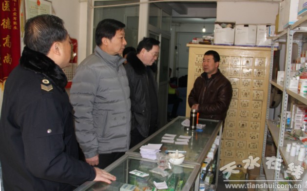 為更好地規(guī)范轄區(qū)內(nèi)醫(yī)療服務(wù)市場(chǎng)秩序,持續(xù)凈化醫(yī)療服務(wù)市場(chǎng),鞏固打非成效,確保春節(jié)期間廣大患者就醫(yī)安全,讓廣大人民群眾度過歡樂祥和的春節(jié),天水市衛(wèi)計(jì)委牽頭組織,聯(lián)合市社會(huì)管理綜合治理委員會(huì)辦公室、市公安局、市食藥監(jiān)局、市工商局、市衛(wèi)生計(jì)生綜合監(jiān)督執(zhí)法局等部門,于2016年1月26日-27日在市區(qū)內(nèi)開展了節(jié)前打擊非法行醫(yī)專項(xiàng)執(zhí)法檢查。此次行動(dòng)由市衛(wèi)計(jì)委副主任杜維成帶領(lǐng),市工商局副局長(zhǎng)李新民、市衛(wèi)生和計(jì)生綜合監(jiān)督執(zhí)法局副局長(zhǎng)潘臨平,市綜治辦、市公安局、市食藥監(jiān)局的相關(guān)負(fù)責(zé)同志參加了此次行動(dòng)。
