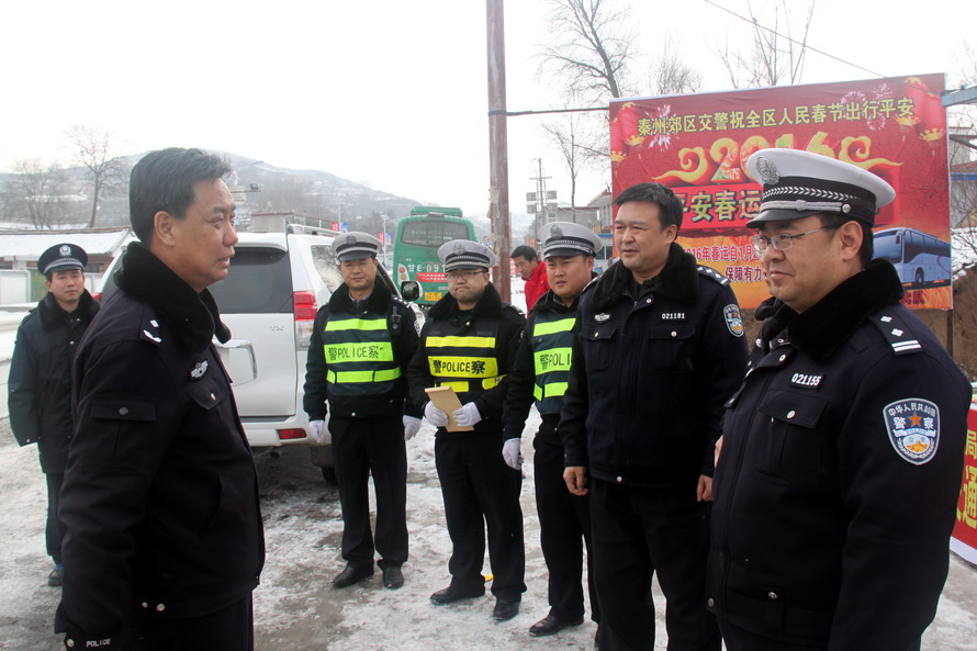 。ㄊ泄簿贮h委委員、交警支隊(duì)長(zhǎng)楊金生在徐家店春運(yùn)執(zhí)法服務(wù)點(diǎn)督導(dǎo)檢查)