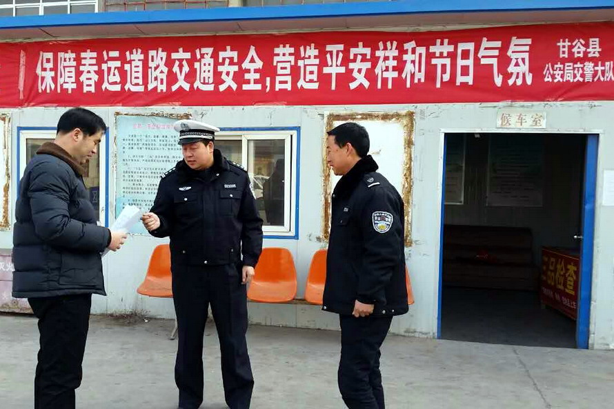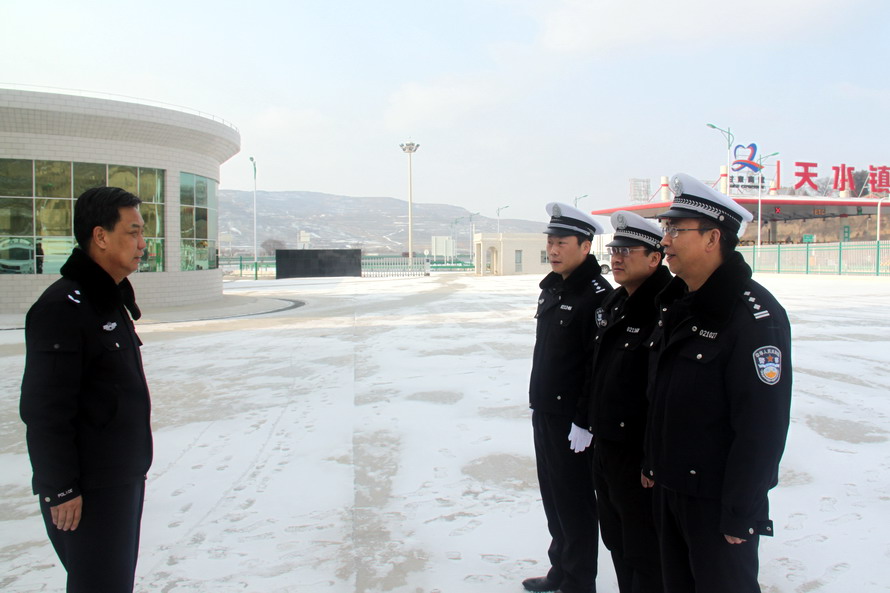 為減少降雪天氣對(duì)春運(yùn)工作影響,確保春運(yùn)期間全市道路交通安全有序,1月30日至31日,天水市公安局交警支隊(duì)領(lǐng)導(dǎo)帶領(lǐng)機(jī)關(guān)科室民警,分別深入轄區(qū)國(guó)省道、十天高速公路、農(nóng)村重點(diǎn)路段、春運(yùn)執(zhí)法服務(wù)站點(diǎn)、客運(yùn)車(chē)站等地,對(duì)春運(yùn)期間各大隊(duì)路面巡邏管控、冰雪惡劣天氣道路交通管控措施落實(shí)、農(nóng)村“兩站一室”及鄉(xiāng)鎮(zhèn)交通安全勸導(dǎo)站職能作用發(fā)揮等工作進(jìn)行現(xiàn)場(chǎng)督導(dǎo)檢查。