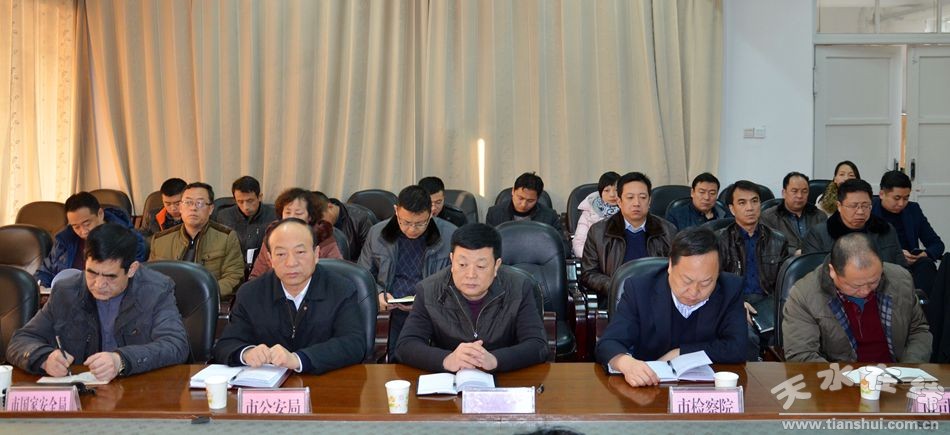 2月4日上午,天水市委常委、政法委書記趙衛(wèi)東主持召開(kāi)市委政法委全體會(huì)議,就認(rèn)真學(xué)習(xí)省委政法工作會(huì)議精神,全面抓好各項(xiàng)工作貫徹落實(shí)進(jìn)行了全面安排。趙衛(wèi)東強(qiáng)調(diào),全市各級(jí)政法部門要精心組織、科學(xué)謀劃,緊緊圍繞省委政法工作會(huì)議及各專項(xiàng)工作會(huì)議精神,緊盯中央和省上一系列決策部署,緊扣今年各項(xiàng)重點(diǎn)目標(biāo)和重點(diǎn)任務(wù),認(rèn)真學(xué)習(xí)、深入思考,吃透精神、理清思路,著力抓好省委政法工作會(huì)議及各專項(xiàng)工作會(huì)議精神的貫徹落實(shí)。市委政法委委員和市綜治辦、市維穩(wěn)辦、市防范和處理邪教辦、市中級(jí)法院、市檢察院、市公安局、市司法局、市國(guó)家安全局、市法學(xué)會(huì)相關(guān)負(fù)責(zé)同志參加會(huì)議。