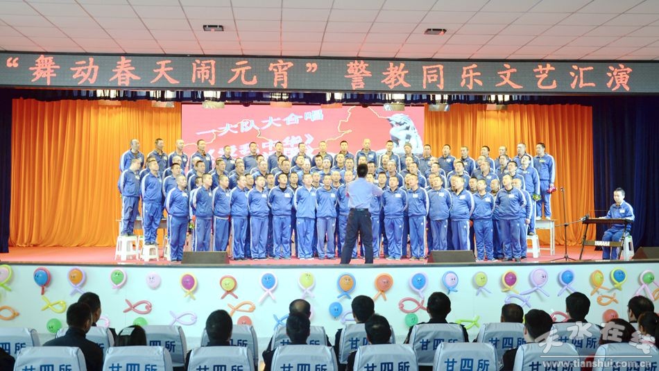 上午9時(shí)整,“舞動(dòng)春天鬧元宵”文藝匯演在舞蹈《開門紅》中拉開。優(yōu)美的舞姿、動(dòng)人的旋律、恢弘的場(chǎng)面,喜氣洋洋,激情四射。小合唱《父親》,唱出了廣大戒毒人員對(duì)親人的期盼,對(duì)父母養(yǎng)育之恩的無限崇敬!痹娎收b《相信未來》弘揚(yáng)了正能量;群口快板《咱要說一說》,在幽默風(fēng)趣中痛批了毒品的危害;青年干警表演的四人快板《四所在成長(zhǎng)》,全面回顧了省四所六年拼搏所走過的艱難歷程,激發(fā)了他們愛所如家的榮譽(yù)感;獨(dú)唱《戒毒歌》,完全唱出了戒毒人員改過自新的懺悔心聲,唱出了對(duì)美好生活的無限向往。臺(tái)上臺(tái)下良好互動(dòng),警教同樂為整個(gè)演出錦上添花。整個(gè)演出歷時(shí)近2個(gè)小時(shí),最后在大合唱《明天更美好》中圓滿落下了帷幕。