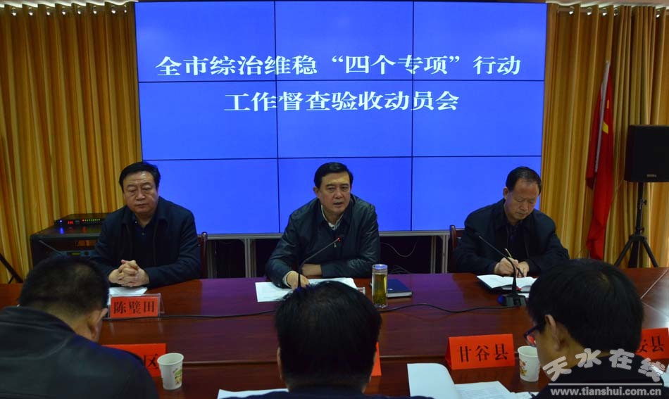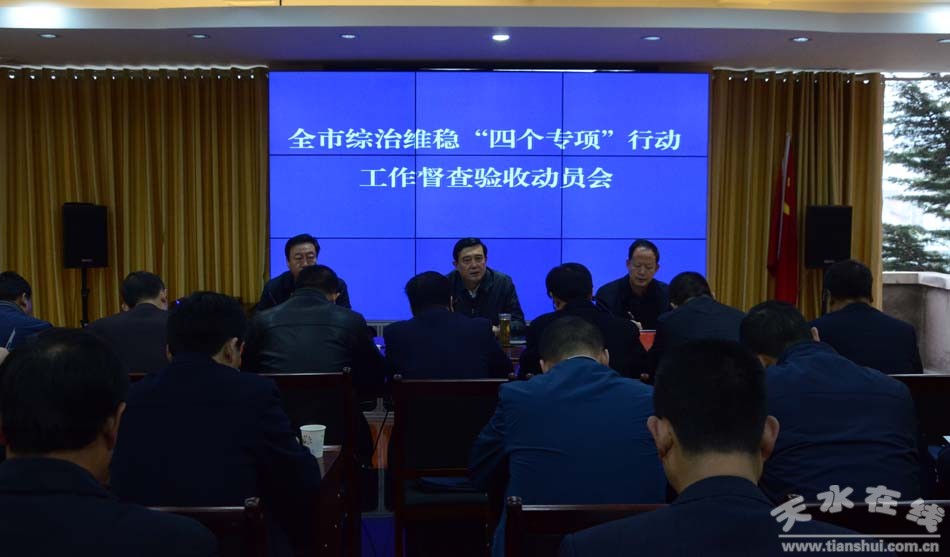 3月24日,天水市委常委、政法委書記趙衛(wèi)東主持召開了全市綜治維穩(wěn)“四個專項”行動工作督查驗收動員會,對“四個專項”行動交叉督查驗收工作作了全面動員部署。市委政法委、市綜治辦、市維穩(wěn)辦及各縣區(qū)委政法委、綜治辦、維穩(wěn)辦、公安局負責同志參加了會議。
