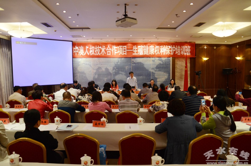 5月10日,中澳人權(quán)技術(shù)合作項(xiàng)目——生殖健康權(quán)利保護(hù)培訓(xùn)班在天水開班。來自內(nèi)蒙古、新疆、寧夏、青海、甘肅等省、自治區(qū)的學(xué)員參加了培訓(xùn)。
