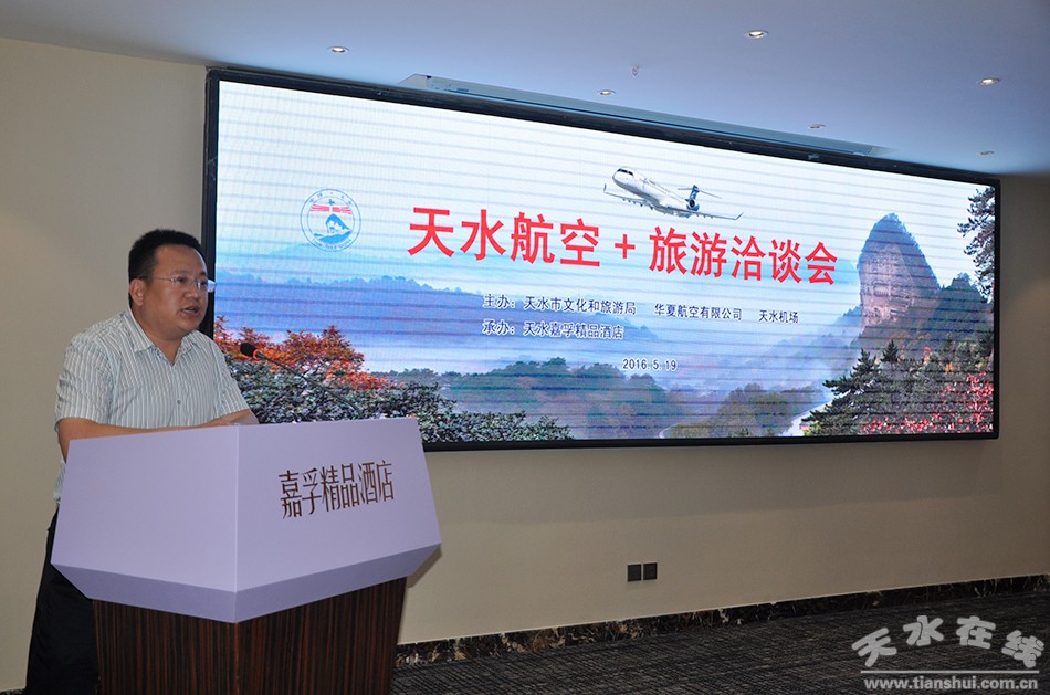 5月19日是中國旅游日。天水市文化和旅游局聯(lián)合天水機場公司、華夏航空公司,在天水市嘉孚美居酒店舉辦“航空+旅游”產(chǎn)品洽談會。重慶江北國際機場市場部總經(jīng)理黃慶和重慶易友國旅、重慶五洲國旅、重慶世圖國旅三家重慶旅行社有關(guān)負責(zé)人受邀參會,天水市當?shù)毓歉陕眯猩缂坝嘘P(guān)媒體參加了洽談會。