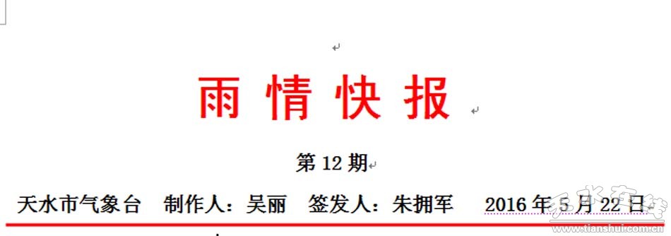 受北方冷空氣和高原暖濕氣流共同影響,21日凌晨開(kāi)始我市西部出現(xiàn)陣雨,夜間全市普降小雨,部分地方出現(xiàn)中雨,最大降水出現(xiàn)在甘谷縣的武家河,達(dá)16.6毫米。截止22日07時(shí),全市各站點(diǎn)降水量如下: