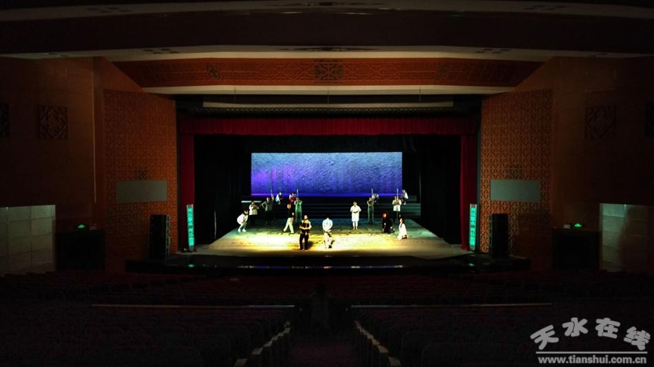 (圖為劇組正在抓緊熟悉舞臺(tái)。)