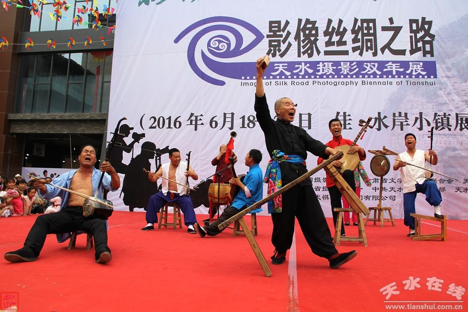 6月18日上午,隨著“影像絲綢之路——天水攝影雙年展”大幕的開啟,聲名遠揚的華陰老腔在秦州區(qū)佳·水岸小鎮(zhèn)也吼了起來……