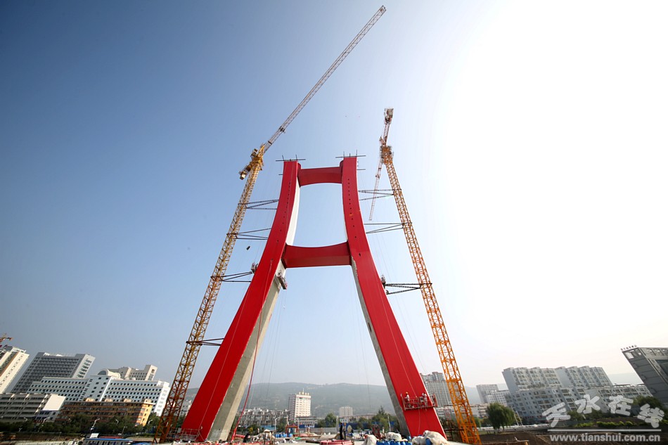 天水在線報道 8月8日上午,記者在現(xiàn)場看到,位于市中心區(qū)域,最近被命名為“藉河紅橋”的獨塔南側(cè)已經(jīng)全部被涂成了紅色,開始“出彩”。該橋南接藉河南路、連通天慶路、北接藉河北路、連通新華路,跨越藉河,為獨塔雙索面斜拉橋,橋長196米,寬30米。