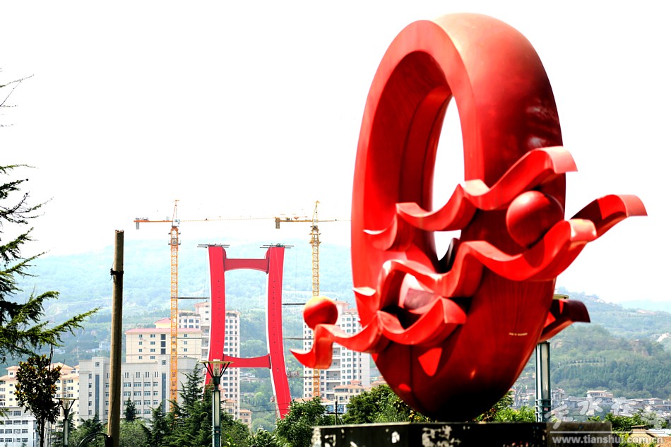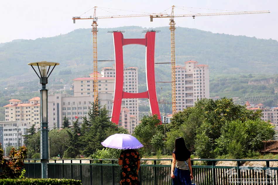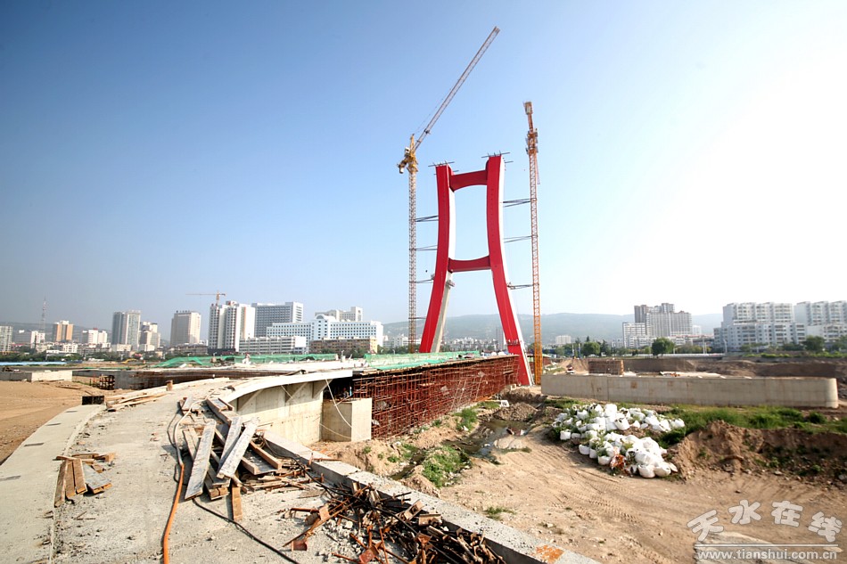 (正在建設(shè)中的藉河紅橋 天水在線2016年7月30日航拍)