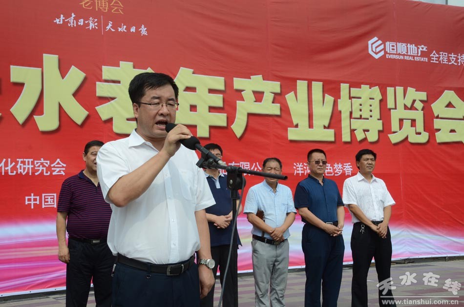 ▲天水市委常委、宣傳部長(zhǎng)王正茂宣布2016首屆天水老年產(chǎn)業(yè)博覽會(huì)開幕