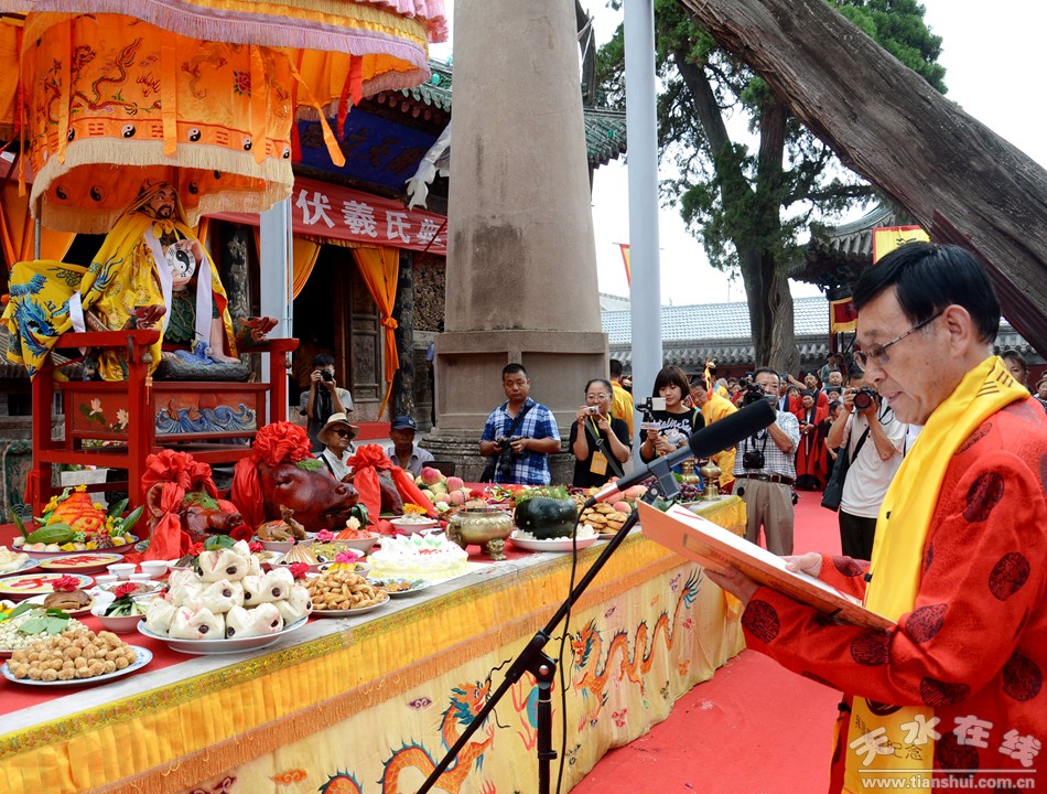 ▲天水市民間祭祀伏羲協(xié)會會長 杜明富恭讀祭文