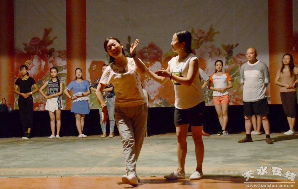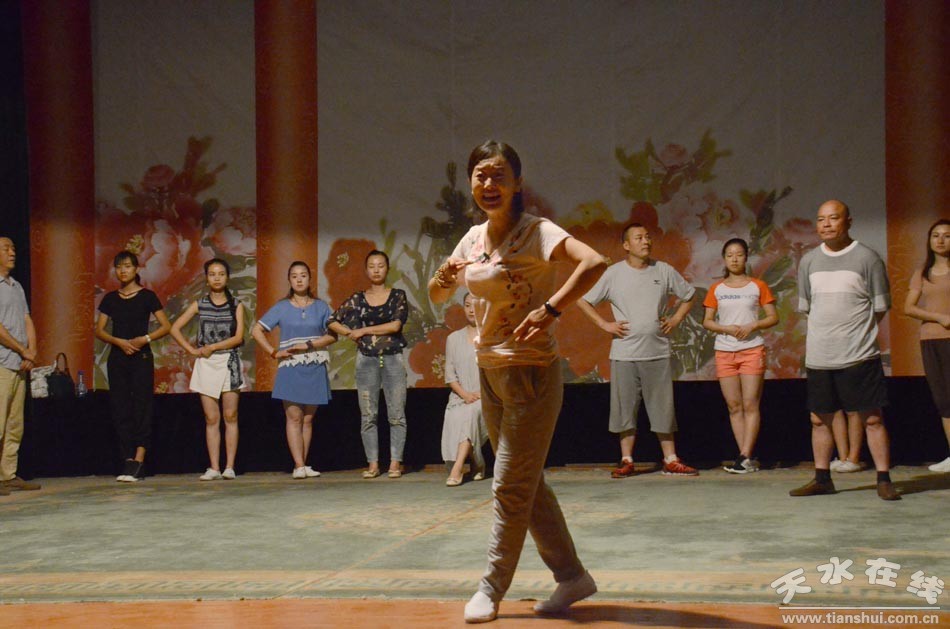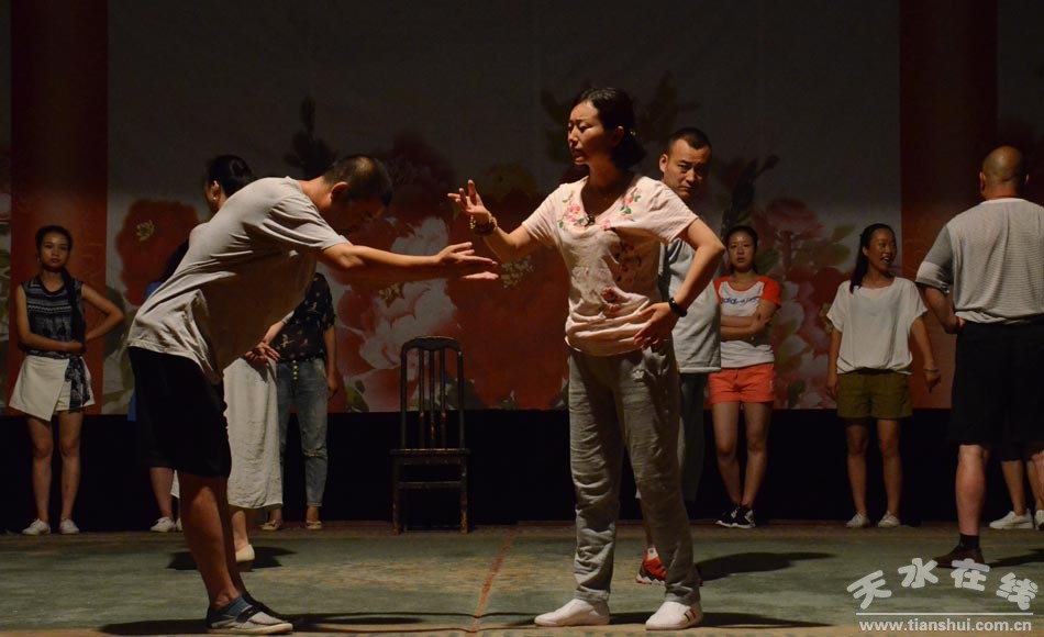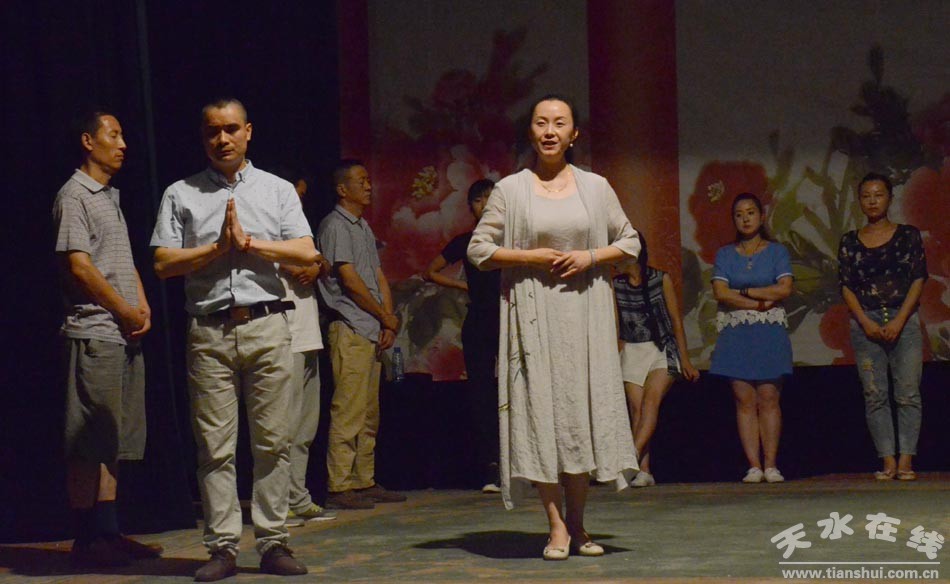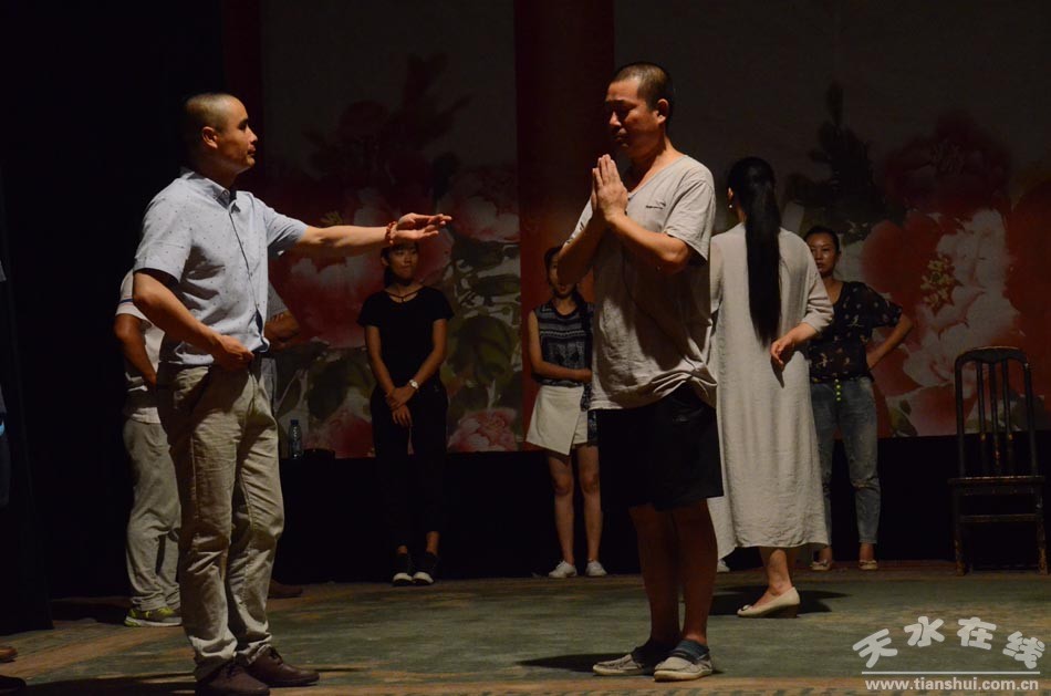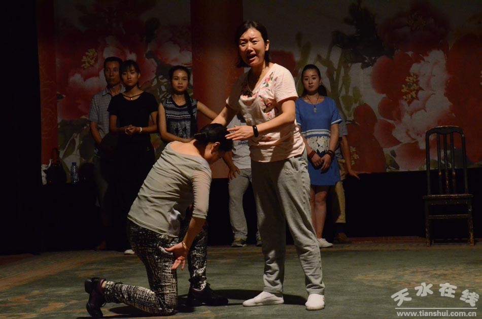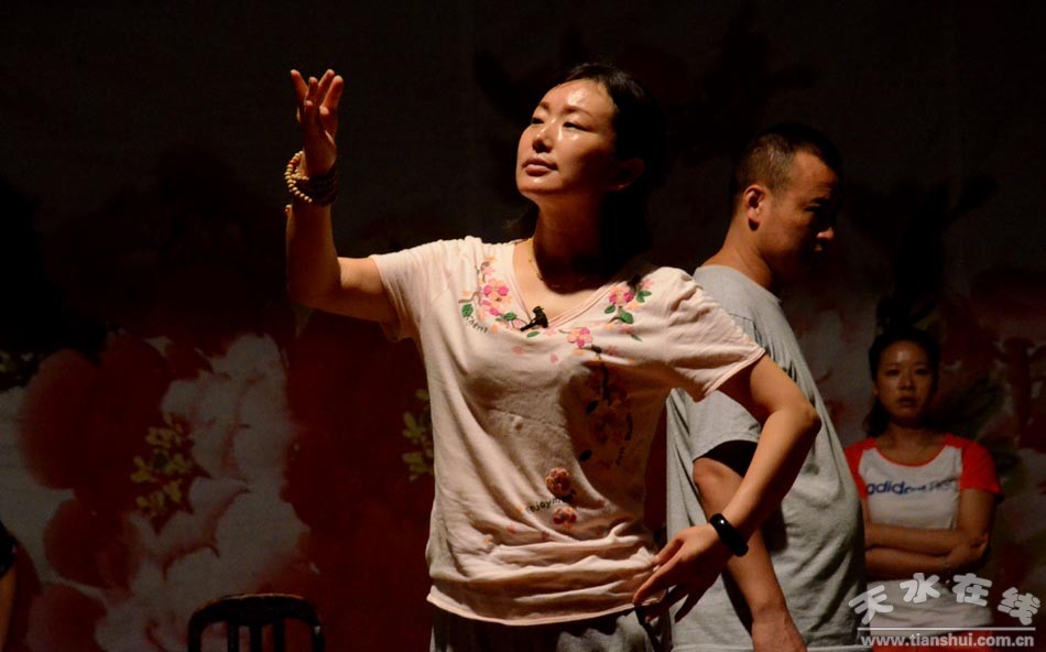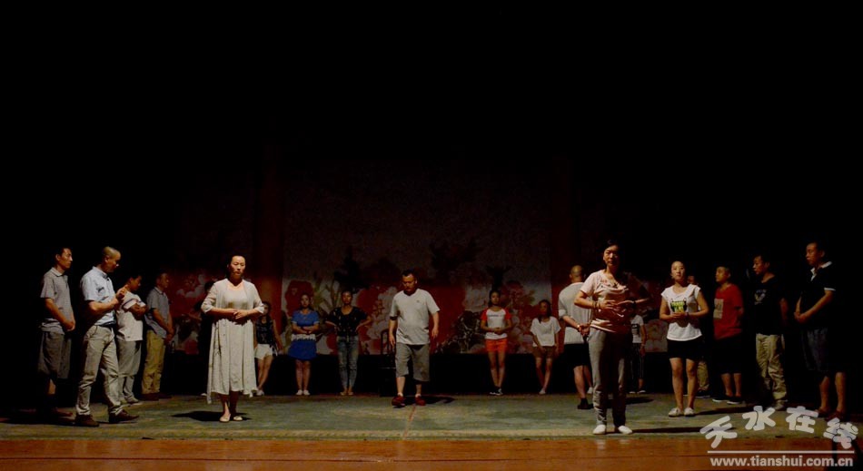 ▲天水市西秦腔研究院演職人員正在為《麥積圣歌》三進(jìn)京城演出加緊排練
