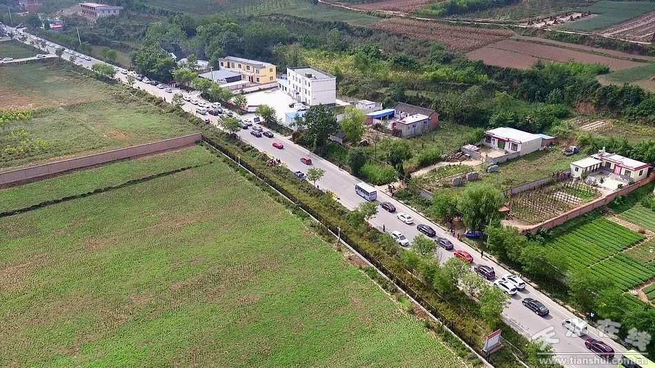 ▲麥賈公路上前往麥積山景區(qū)的車輛 天水在線2016年10月3日航拍