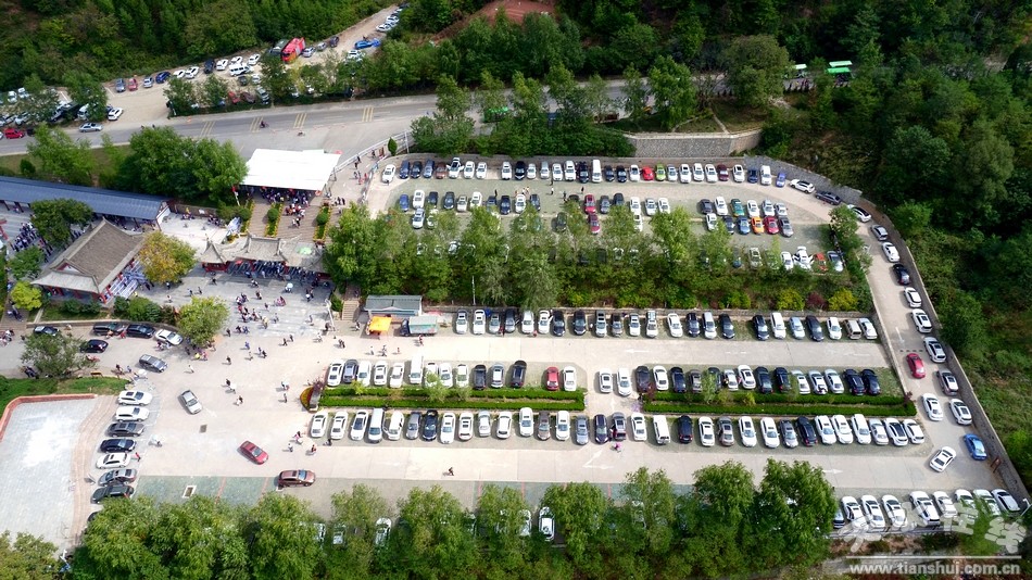 ▲麥賈公路上前往麥積山景區(qū)的車輛 天水在線2016年10月3日航拍 |