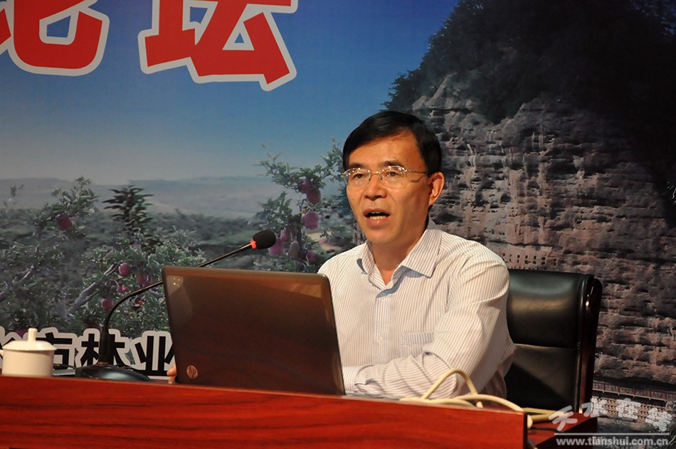 10月20日,由天水市政府主辦的天水花牛蘋果產(chǎn)業(yè)發(fā)展及電子商務(wù)論壇在麥積區(qū)舉行。副市長霍衛(wèi)平主持論壇。