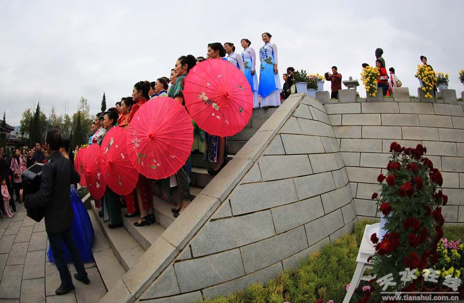 10月23日,2016年秦州區(qū)主題菊展進(jìn)入第四天。由于是周日,且雨過天晴,諸葛軍壘迎來賞花高峰。當(dāng)日,有上萬人前來賞菊。更有賞菊走秀等文藝演出,吸引了眾人目光。