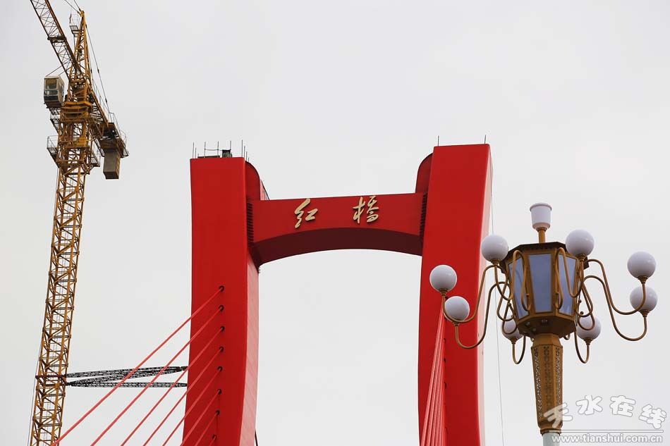 10月23日,記者路過“紅橋”時,已經(jīng)看到該橋的獨塔上已經(jīng)鑲嵌上了“紅橋”二字,大家猜一猜這兩個字是誰寫的?請跟帖留言。答案將在近期公布。