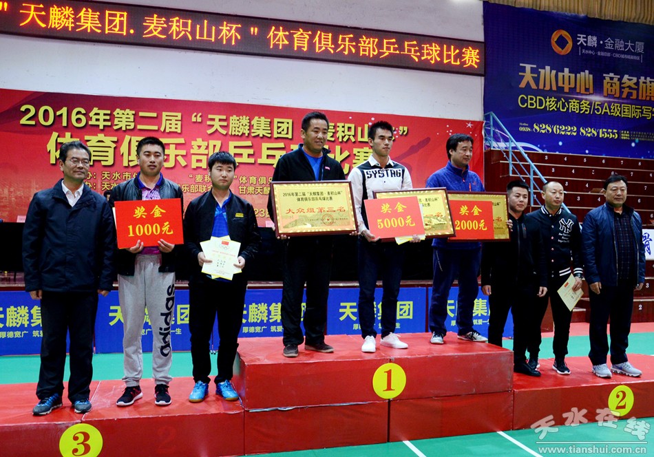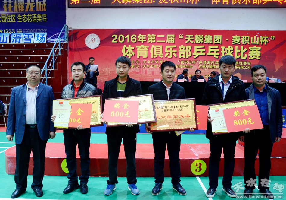 10月23日,第二屆“天麟集團(tuán)·麥積山杯”體育俱樂部乒乓球賽在天水市南山體育訓(xùn)練館落幕。副市長霍衛(wèi)平出席頒獎儀式并觀看了比賽。