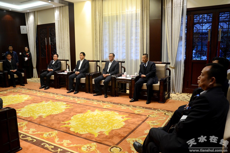 天水市委常委、市委秘書長蔣曉強,副市長張建杰,市政府秘書長逯克宗一同會見。 |