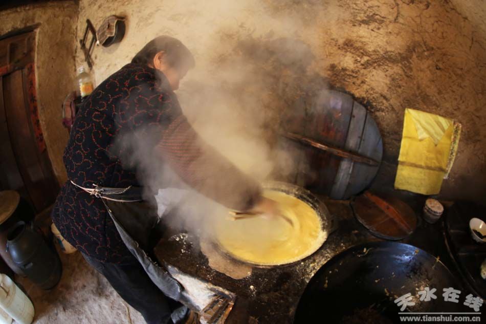 ▲馓面飯是這樣煉成的 天水在線于2016年11月26日攝于梅江村