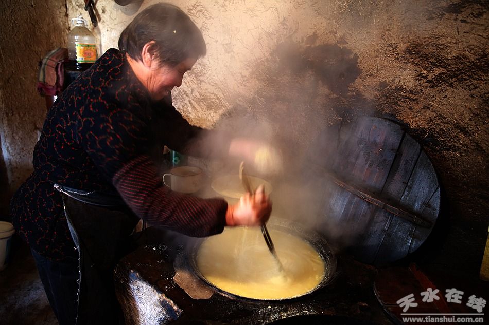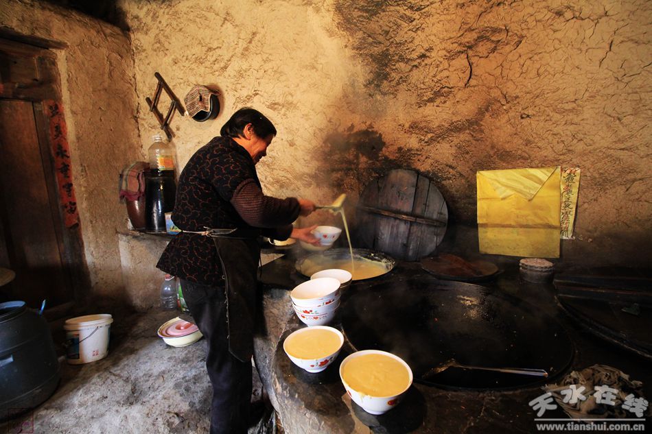 11月26日,天水在線一行走進中國傳統(tǒng)村落——清水縣賈川鄉(xiāng)梅江村攝影采風,主題拍攝“馓面飯是如何煉成的”。當日,在清水縣重點文物保護單位——梅江古民居(NO:01)朱家大院(邊院),該院女主人用自家種的玉米磨的玉米面,用最為傳統(tǒng)的做法為采風團制作了一鍋馓面飯。
