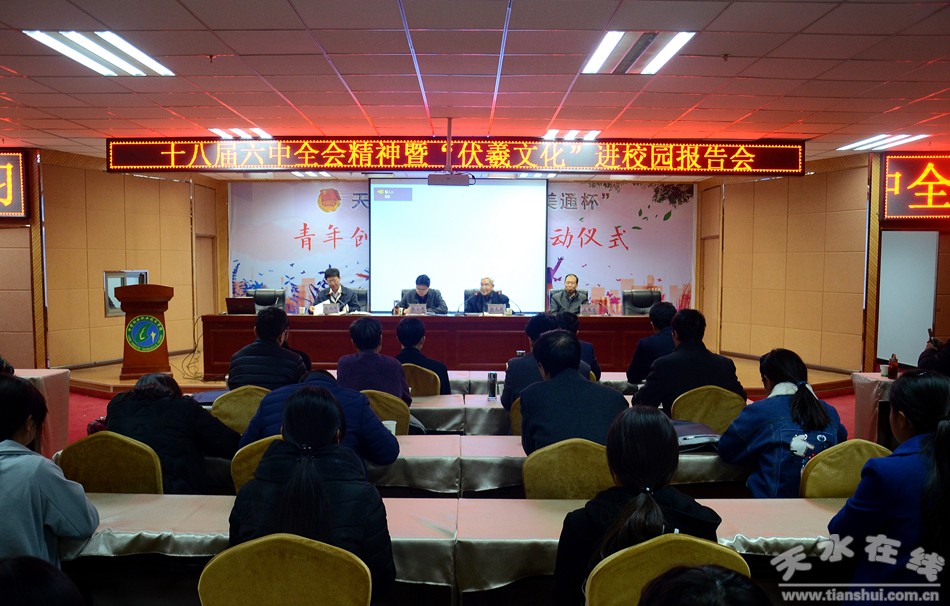 11月25日,天水市政府節(jié)會(huì)辦、市政府研究室組織黨員干部開(kāi)展黨的十八屆六中全會(huì)精神宣講及“伏羲文化”進(jìn)社區(qū)、進(jìn)企業(yè)、進(jìn)校園系列活動(dòng)。