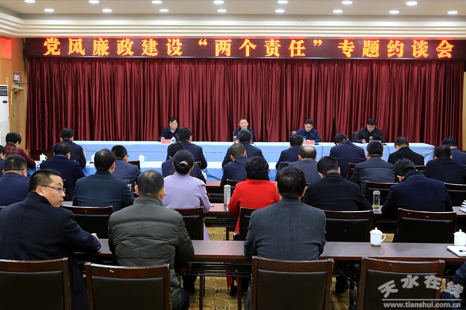 12月21日,天水市委書記王銳就落實黨風(fēng)廉政建設(shè)“兩個責(zé)任”,集體約談了縣區(qū)黨政主要負(fù)責(zé)同志和副書記、紀(jì)委書記、組織部長。他強(qiáng)調(diào),要以強(qiáng)烈的政治意識、大局意識、核心意識、看齊意識,履行好“兩個責(zé)任”,高度自覺地把全面從嚴(yán)治黨主體責(zé)任扛起來、履行好,營造風(fēng)清氣正的縣域政治生態(tài)和干事創(chuàng)業(yè)環(huán)境。