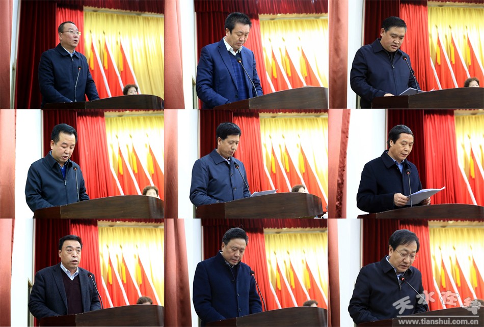 12月21日,中共天水市委召開全體會(huì)議,通報(bào)2015年度“三述”對象整改情況,聽取部分縣區(qū)政府和市直部門主要負(fù)責(zé)人述紀(jì)述廉述作風(fēng)報(bào)告,審議《中共天水市委關(guān)于2016年黨風(fēng)廉政建設(shè)主體責(zé)任落實(shí)情況的報(bào)告》,對“三述”對象進(jìn)行民主測評。市委書記王銳同志在會(huì)上作了講話,他強(qiáng)調(diào)各級黨員領(lǐng)導(dǎo)干部要進(jìn)一步深化思想認(rèn)識(shí),狠抓問題整改落實(shí),通過開展“三述”,把主體責(zé)任落實(shí)到位,把紀(jì)律要求傳導(dǎo)到位,促進(jìn)全市黨風(fēng)廉政建設(shè)取得新成效。