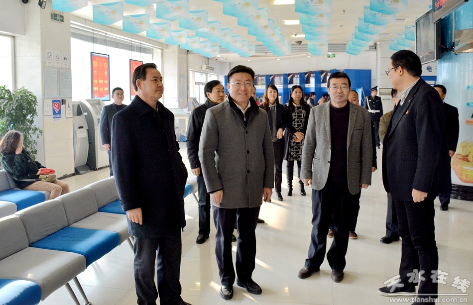 李曉東一行先后來到中國建設銀行天水分行、交通銀行天水分行、甘肅銀行天水分行、天水秦州農(nóng)村合作銀行等金融單位,與正在忙碌工作的干部職工親切交談,詢問他們的日常工作情況,了解銀行經(jīng)營發(fā)展狀況。