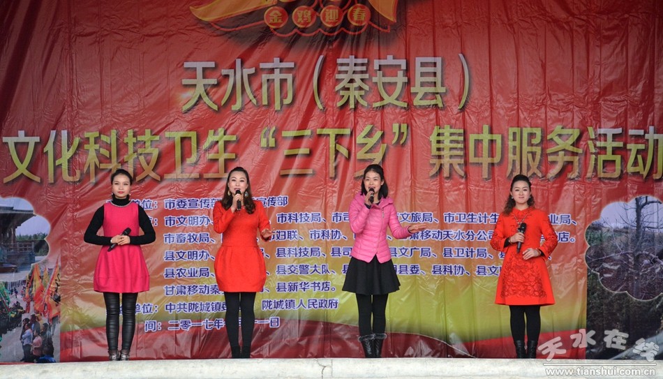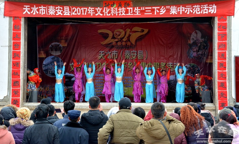 惠農愛民灑雨露,驅寒迎春暖媧鄉(xiāng)。1月11日,2017年天水市文化科技衛(wèi)生“三下鄉(xiāng)”集中示范活動在秦安縣隴城鎮(zhèn)舉行。來自市縣30多個部門和單位的工作人員為廣大群眾帶來了文藝演出、科普宣傳、醫(yī)療義診等現(xiàn)場服務,正式拉開了全市2017年“三下鄉(xiāng)”活動的序幕。