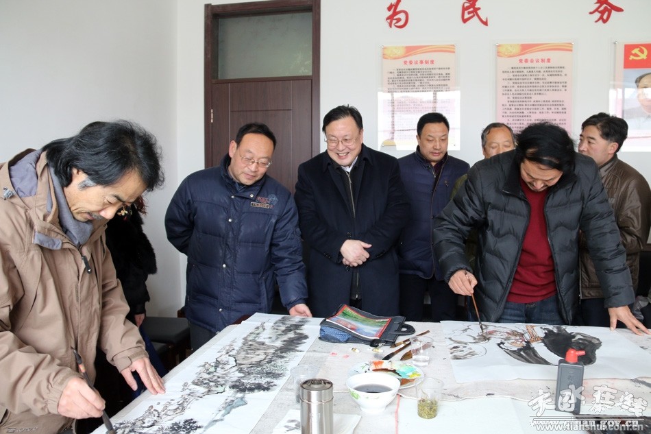 (現(xiàn)場為群眾創(chuàng)作書畫作品)